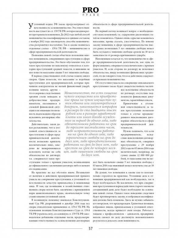 Не думаю, что изменения в законе как-то положительно отразятся на практике. Уголовные дела в отношении предпринимателей как возбуждались, так и будут возбуждаться. Не исключено, что при совершении преступления в период действия старого закона, на сегодняшний день дело будет возбуждено на основании новой статьи. Однако, такое поведение следствия будет противоречить закону и избранная квалификация должна быть изменена. Здесь не нужно забывать: кто вооружен, тот предупрежден. Грамотная позиция, избранная лицом, привлекаемым к уголовной ответственности, всегда принесет свои плоды. Профессиональный адвокат по мошенничеству, имеющий понимание данных изменений, работая по делу в тандеме с предпринимателем, способен достигнуть положительного результата и доказать невиновность.